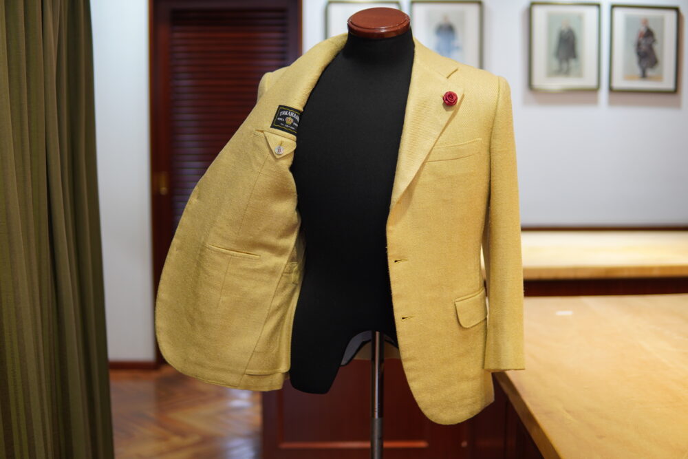 Bespoke Jacket 2024.03.18 信州上田紬で仕立てたジャケット。 絹100%のツイードは中々お目に掛かれない。 紬特有の節や光沢感も味わえる、特別な一着。 大見返し仕立てになっているが、裏地を付ける事ももちろん可能。 Price…¥340,000~ Bespoke Suit »« Morning dress Basting