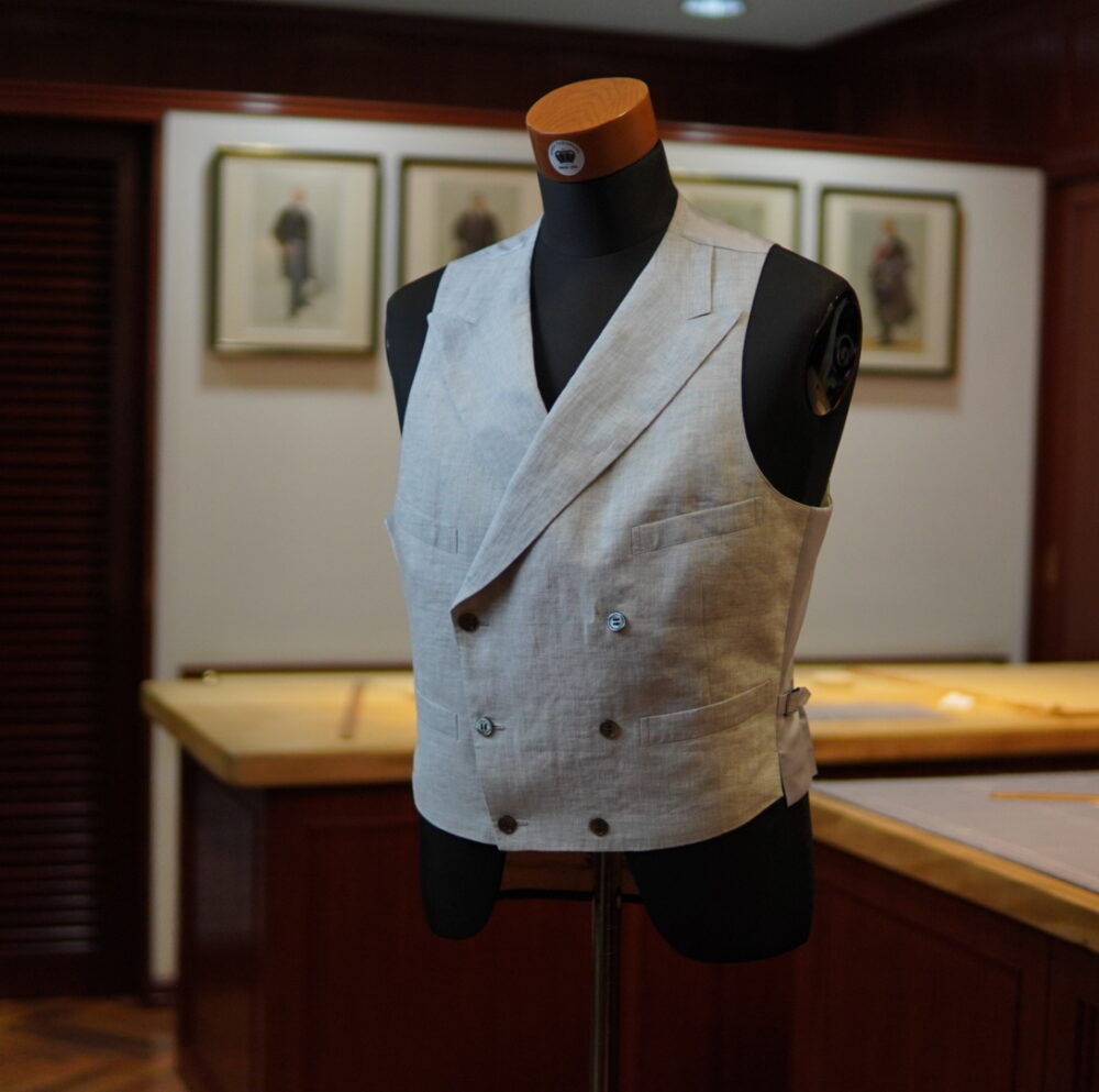 LINEN Waistcoat 2024.07.26 真夏に麻100%のウエストコートは如何でしょうか? 暑い夏ですがどうしてもシャツ一枚になるのは憚られる、、、そんなときに重宝するのが麻のウエストコートです。 シングルでもダブルでも、ワードローブに一枚加えてみてはいかがでしょうか。 Price…¥99,000~ « LINEN&WOOL Jacket