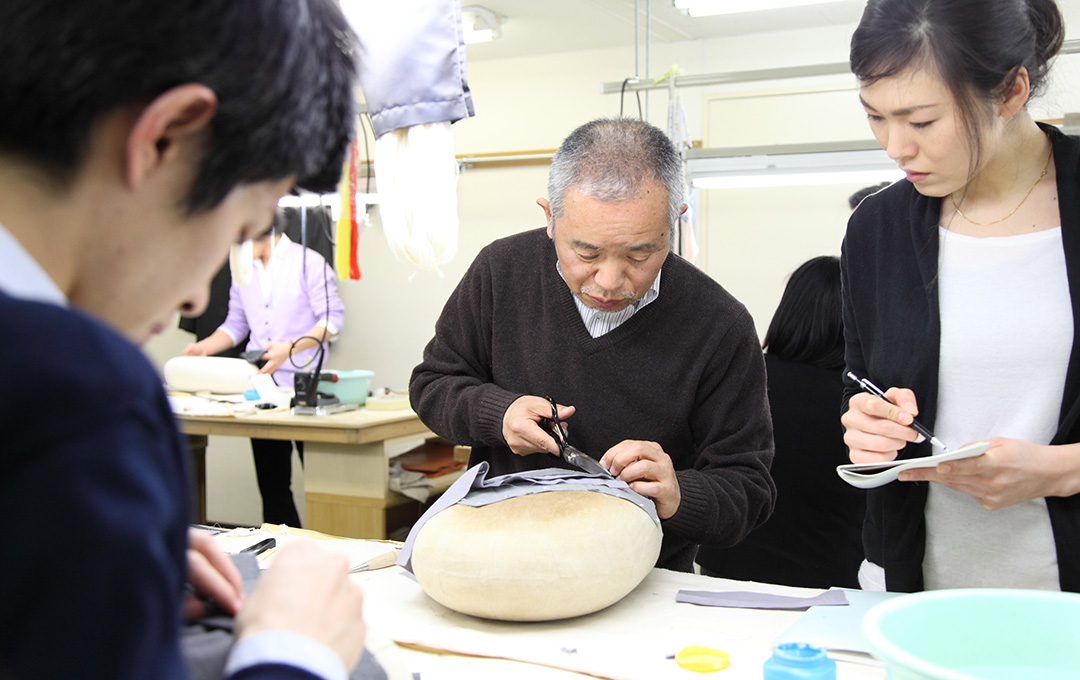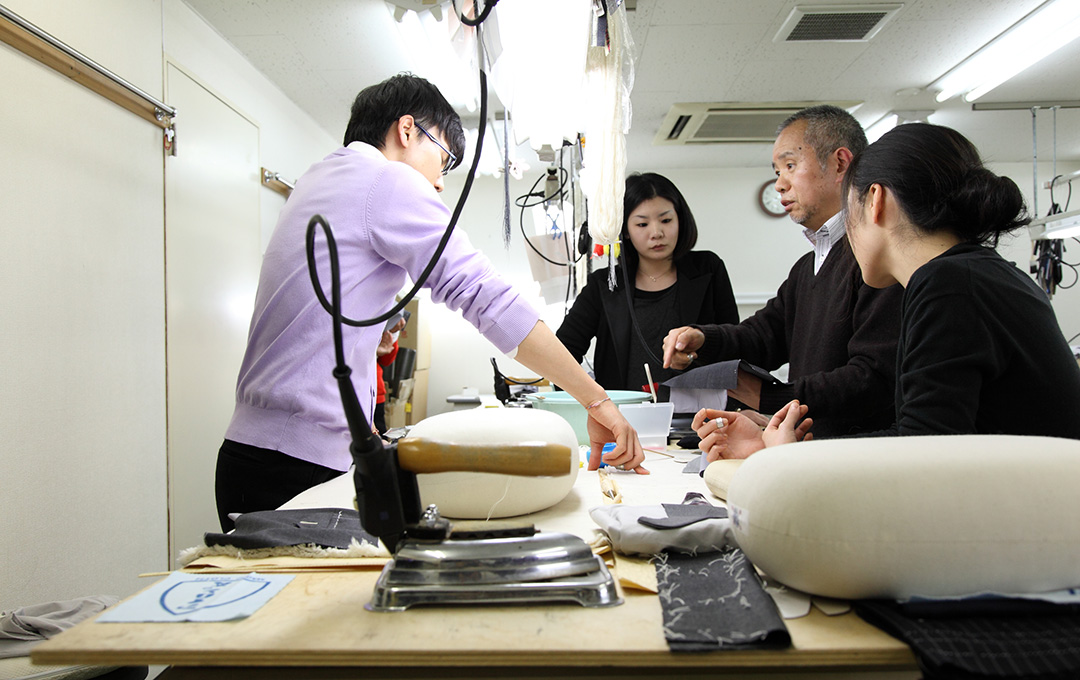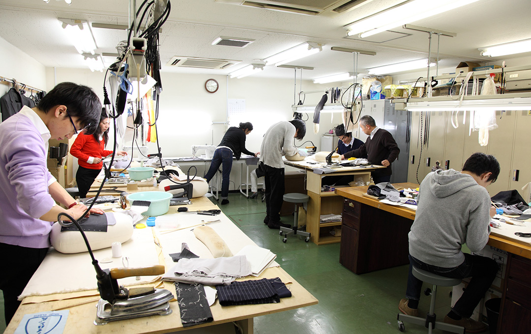 私共では伝統の技術を伝承する為、2003年、創業100周年の記念事業の一つとして、小規模ではありますが、手作業による紳士服縫製技術指導教室を開講し、縫製技術者の育成を開始いたしました。 当教室開設以降、類似の教室が誕生しているようですが、当教室の圧倒的な授業時間と充実した講師陣による授業内容は、他の教室では真似ができません。そしてなんと言っても日本最古と言っても過言ではない老舗でありながら、常に時代の流れを柔軟に取り入れて行く、技術者でもある経営陣のエスプリを身近に感じることができる環境は、他の教室では体験できないでしょう。